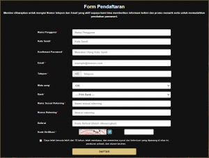 - Referal : Isikan dengan Kode Referal yang mengajak Anda bergabung di Agen PiramidSlot. Jika tidak ada, dikosongkan